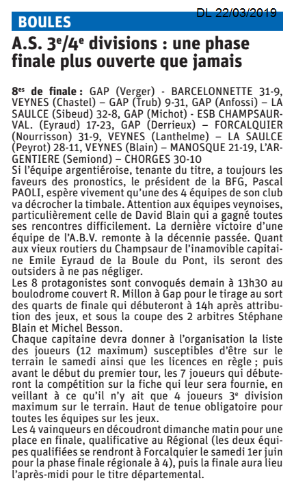 En 8ème de finale on retrouve 4 équipes de la BFG (VERGER, DERRIEUX, ANFOSSI et TRUB)