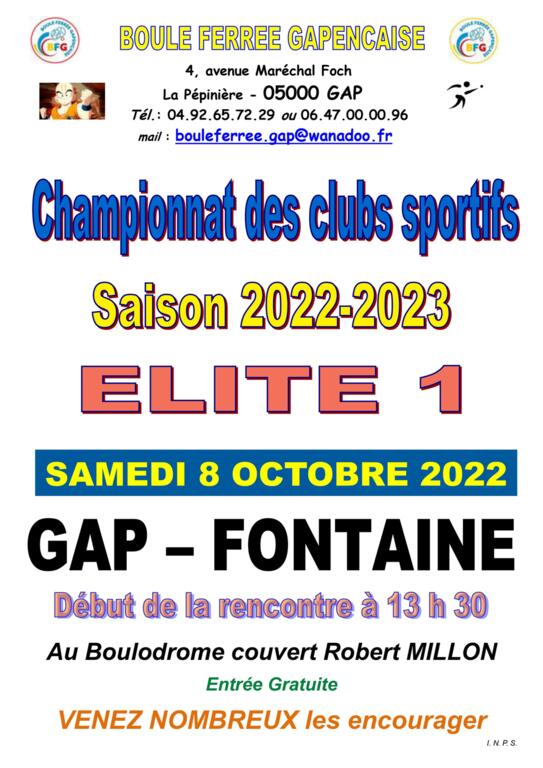 ELITE 1 : GAP reçoit FONTAINE