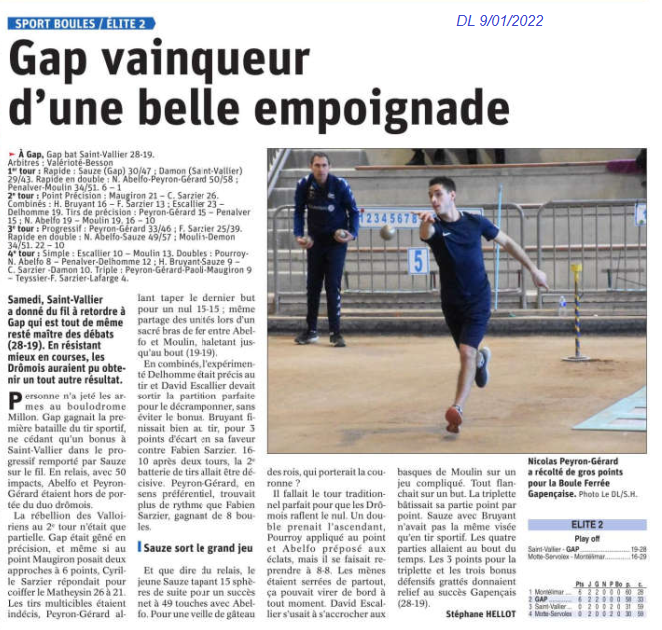 Prochaine rencontre : le 29 janvier 2022 à domicile contre MONTELIMAR