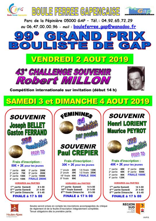 A NOTER : changement cette année le Grand Prix de Gap 2019 se déroulera du vendredi au dimanche (au lieu de samedi à lundi) du 2 au 4 août 2019.
