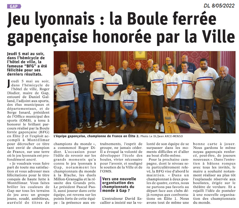 La mairie de Gap a honoré les champions de France des clubs sportifs ELITE 2 de la BFG