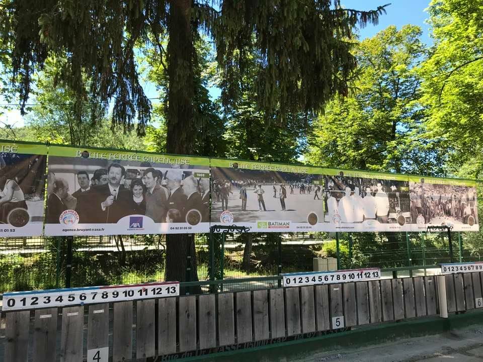 Les banderoles du centenaire sont installées tout autour du boulodrome