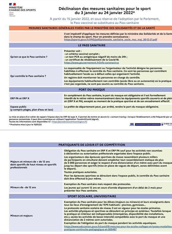 Mesures sanitaires dans le sport au 3 janvier 2022