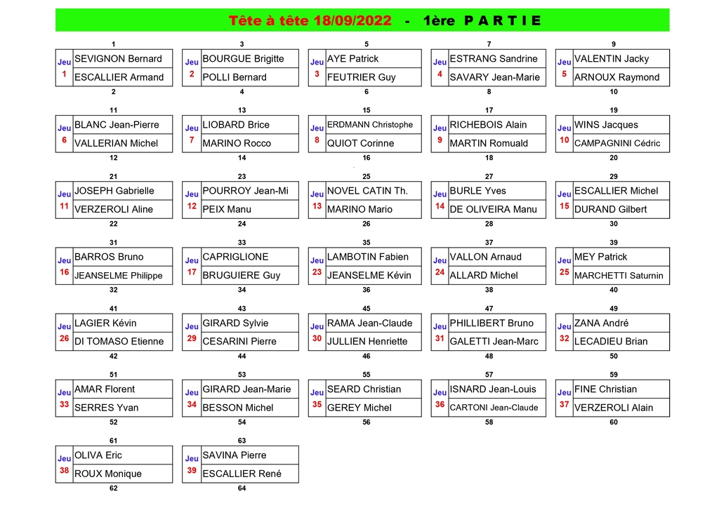 Tirage du tête à tête du 18/09/2022