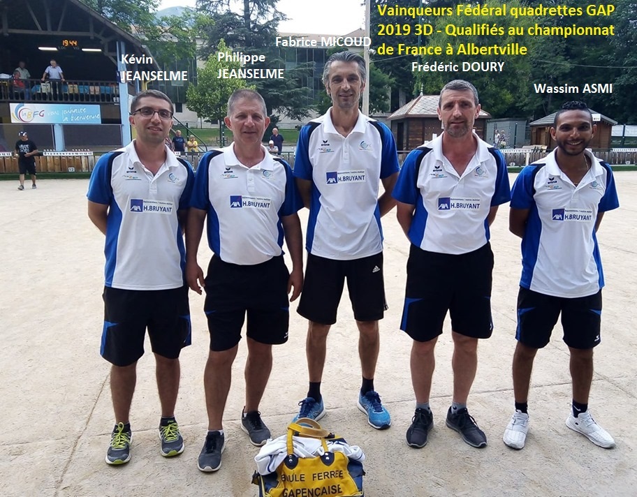 Félicitations à nos sociétaires de la BFG, vainqueurs du féféral quadrettes 3ème division qui s'est déroulé à GAP ce week-end et tous nos encouragements pour le championnat de France à Albertville (Savoie)