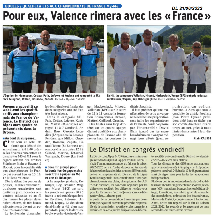 Les équipes Debruges, Wagner, Rey, Brossier, Muret et Verger, Mackowiak, Micoud, Vallérian iront à Valence le 15 juillet