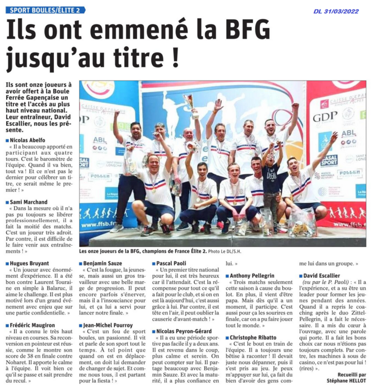 Présentation de l'équipe qui a emmené la BFG jusqu'au titre
