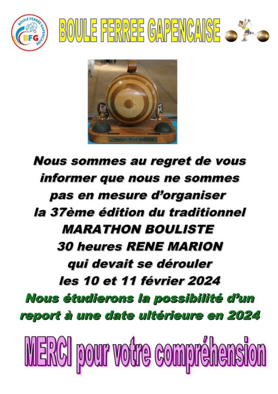 Le 37ème marathon René Marion de 30 heures n'aura pas lieu au mois de Février