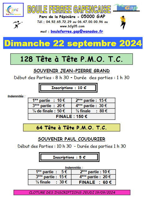 ATTENTION : Fin des inscriptions Jeudi 19 septembre.